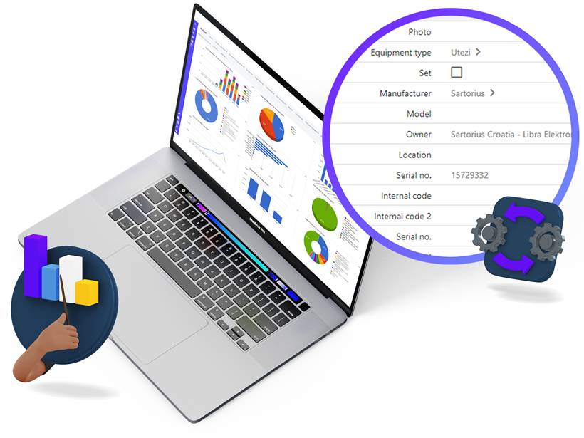 myScal® može biti prava servisna knjižica svakog pojedinog predmeta mjerne opreme, a posebno laboratorijske, gdje automatizira računanje mjernih driftova i omogućuje analizu trendova. Uvijek dostupni izvještaji o opremi, mogu se pratiti pomoću statističkih prikaza i različitih mogućnosti izvoza podataka.