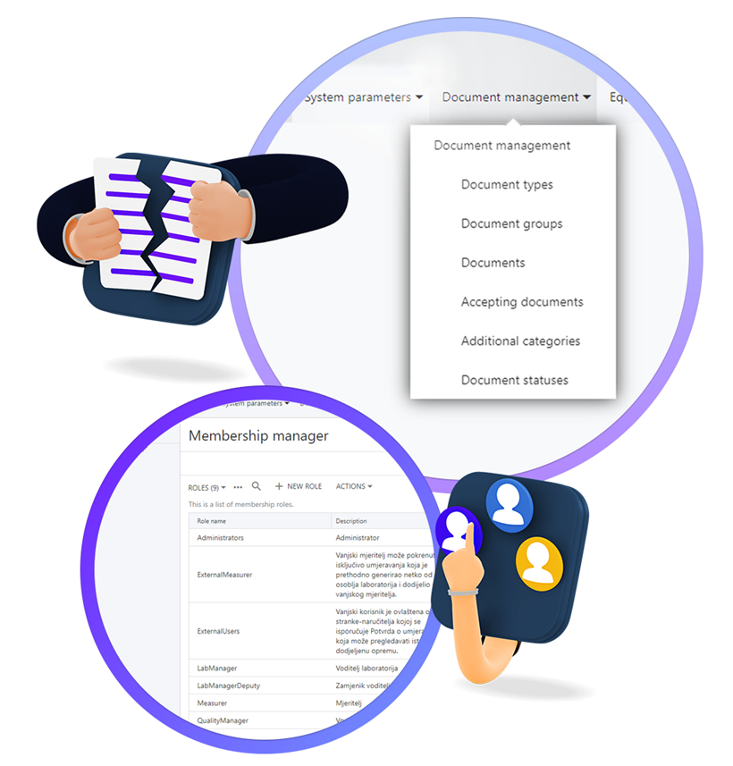 Prema vašim potrebama i potrebama vaših korisnika moguće je koristiti niz različitih korisničkih uloga, poput managementa laboratorija, mjeritelja, managementa korisnika ili korisnika mjerila. Sigurnost upravljanja korisničkim ulogama osigurano je različitim mogućnostima ovlaštenja i sigurnosnim zaporkama korisnika.