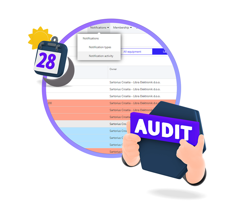 myScal® brine da oprema uvijek bude umjerena na vrijeme, bilo da se radi o mjerilima vaših korisnika ili vašoj laboratorijskoj opremi. Prema intervalu umjeravanja, program obavještava korisnika o skorom isteku. Podsjetnici na umjeravanja i planiranje umjeravanja iznimno su bitni za upravljanje ljudskim i materijalnim resursima (opremom).